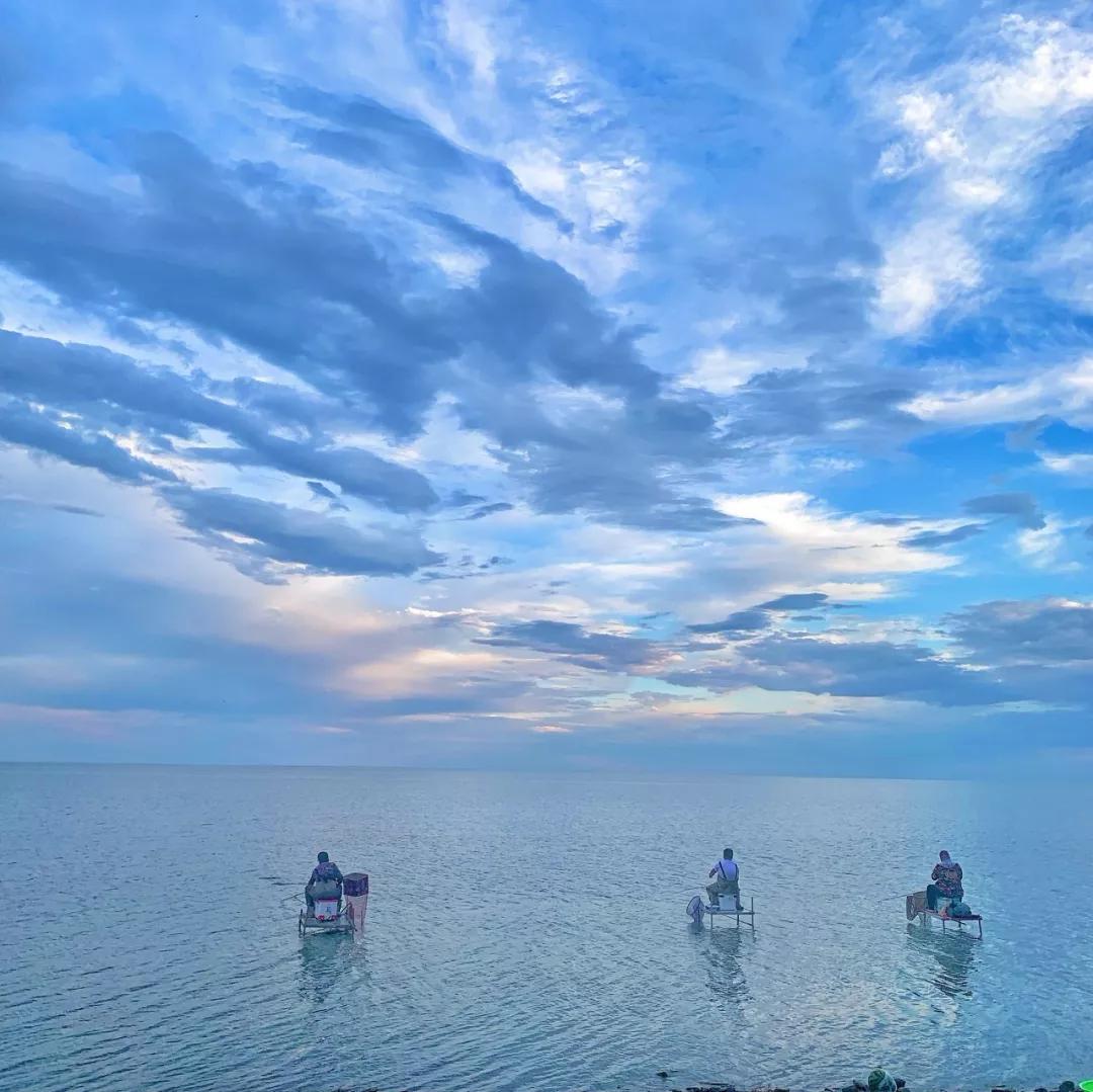 湖面上碧波蕩漾,湖畔蘆葦叢生