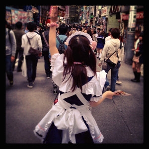 的帶動下,ACGN界也呈現出一片盛況。許多ACGN愛好者開始光顧流連于秋葉原。模仿游戲中的場景設置以及出場人物裝扮的茶館也在此時出現了。隨后以服務生cosplay的進行營業的咖啡店也陸續登場。集合漫畫茶館和游戲咖啡店于一體的店鋪也頗有人氣。秋葉原大概有10家以上這樣的店鋪,由于勞動法的緣故店鋪一般嚴格按照朝九制度,一般都是八九點鐘開門,關門就比較晚。