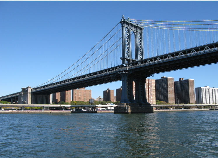 如今在曼哈頓島和布魯克林區(qū)之間,有一座跨越東河的懸索大橋,叫布魯克林橋。布魯克林橋建成于1883年,外觀富麗典雅,高塔和鐵索都是畫家們競向描繪的對象。這座橋與帝國大廈和昔日的世貿(mào)中心雙子塔樓一道,一直是紐約的標(biāo)志性建筑,而工程師羅伯林一家兩代三口人的傳奇故事,更是給大橋增添了華美的光彩。