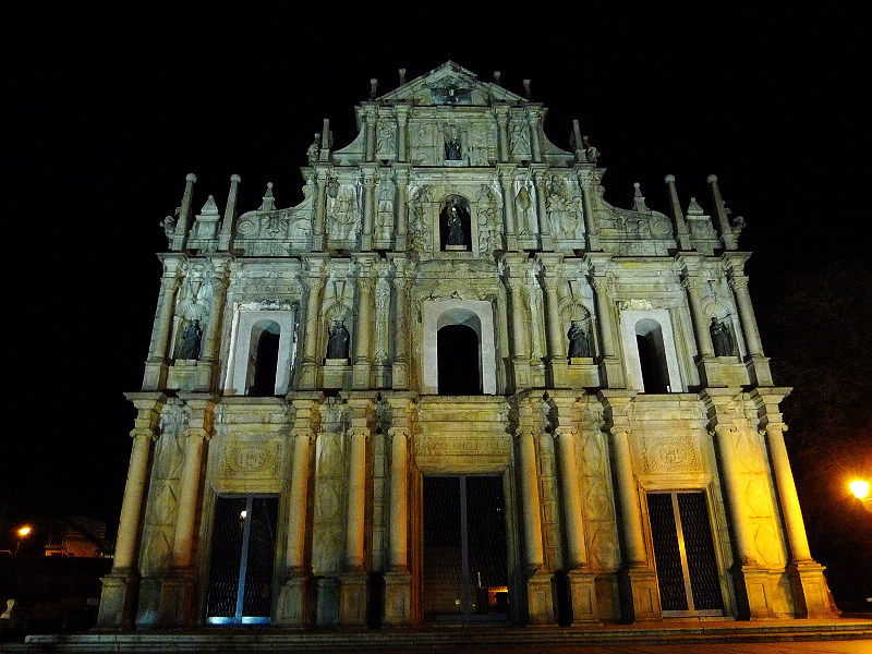 大三巴牌坊(Ruins of St.Paul),是澳門最具代表性的名勝古跡,為1580年竣工的圣保祿大教堂的前壁,此教堂糅合了歐洲文藝復興時期與東方建筑的風格而成,體現出東西藝術的交融。雕刻精細,巍峨壯觀。