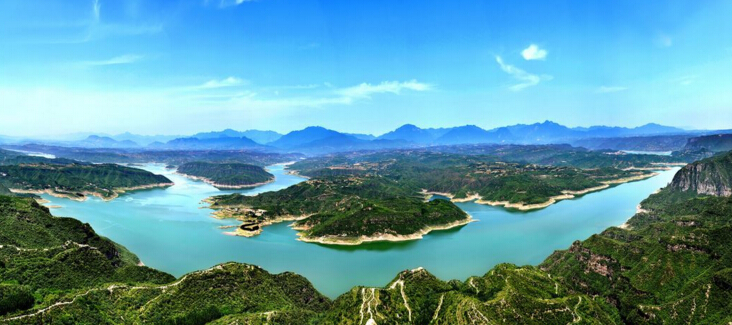 黛眉山是全國唯一一個一面環山三面環黃河的世界地質公園。是環視大河、270度三面觀水的絕佳之地,可以領略到黛眉山三面環水的絕妙景象,西望、北瞰、東眺,偉大的母親河的綽約風姿盡收眼底,黃河如練,綿延千里,奔流東去,進八里峽直達小浪底.觀此奇景,你不得不為美麗中國而嘆服!