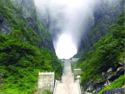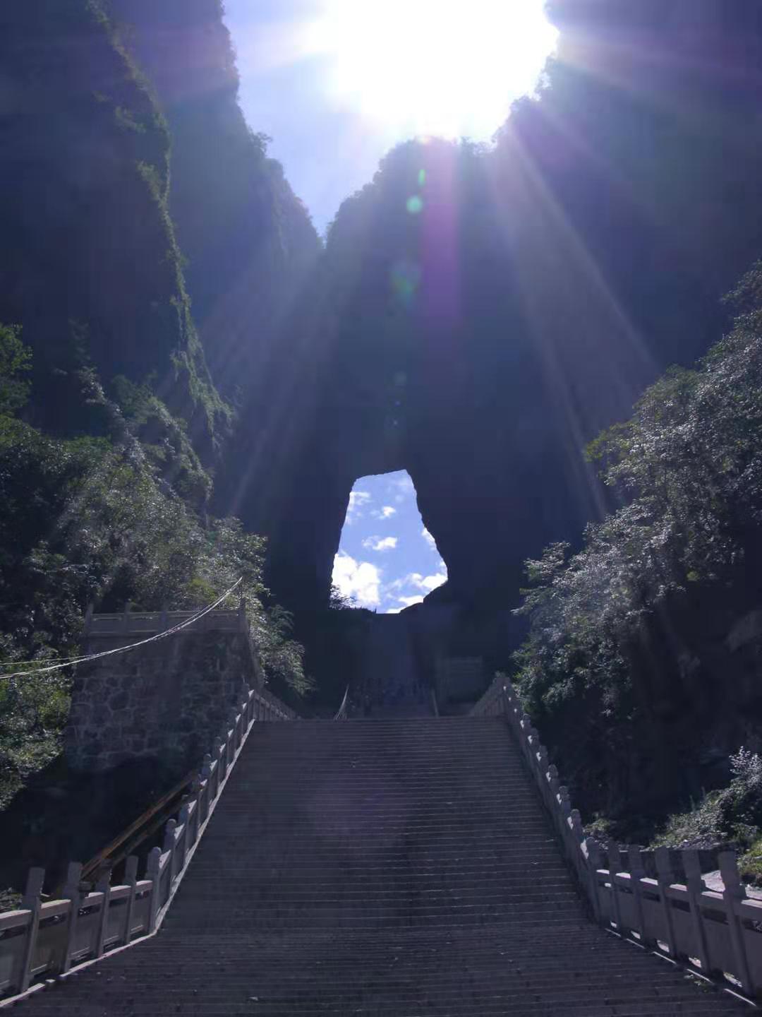 據說,天門洞開景區的有上天梯。有著九百九十九級臺階的上天梯