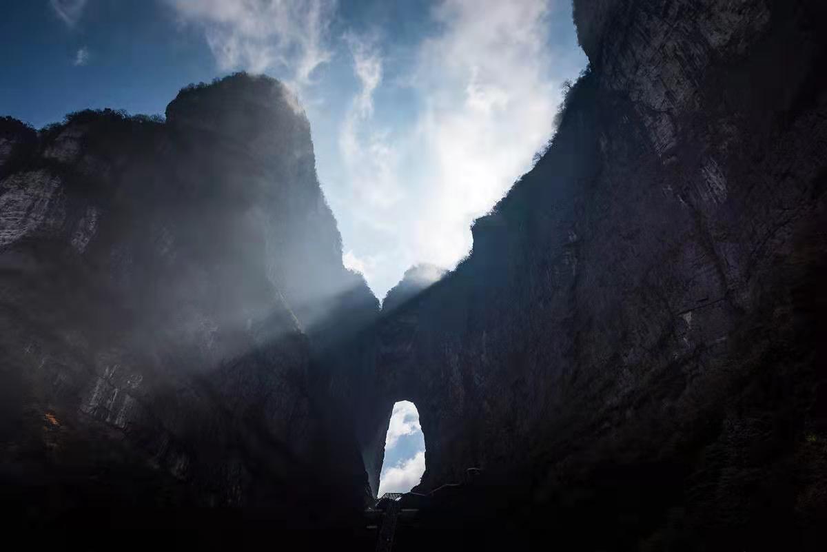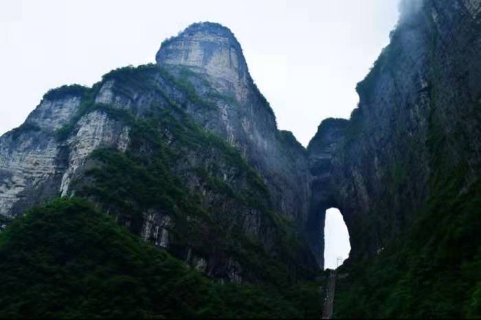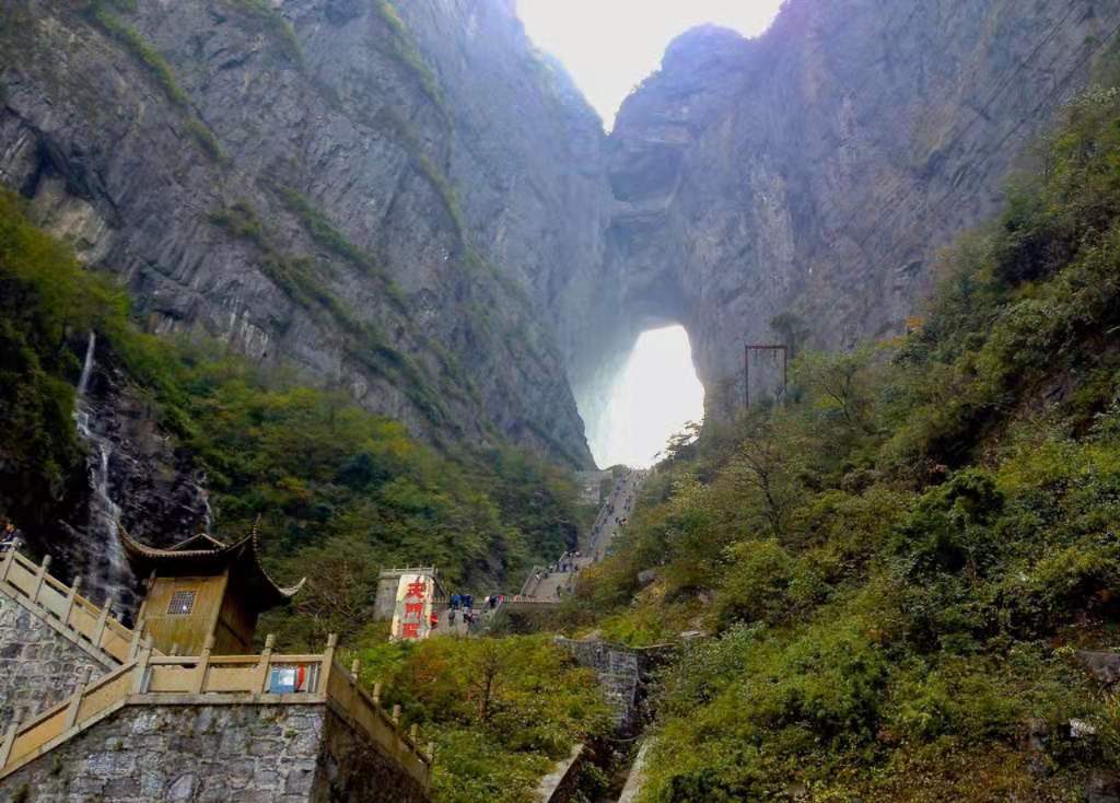 天門山國家森林公園的天門山主峰,有一個巨大的山洞,這就是舉世聞名的天門洞。