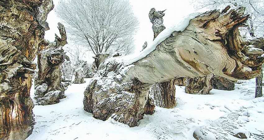 新疆古生態園內有近三百根硅化木,是世界最大的侏羅紀硅化木集中保護基地。
