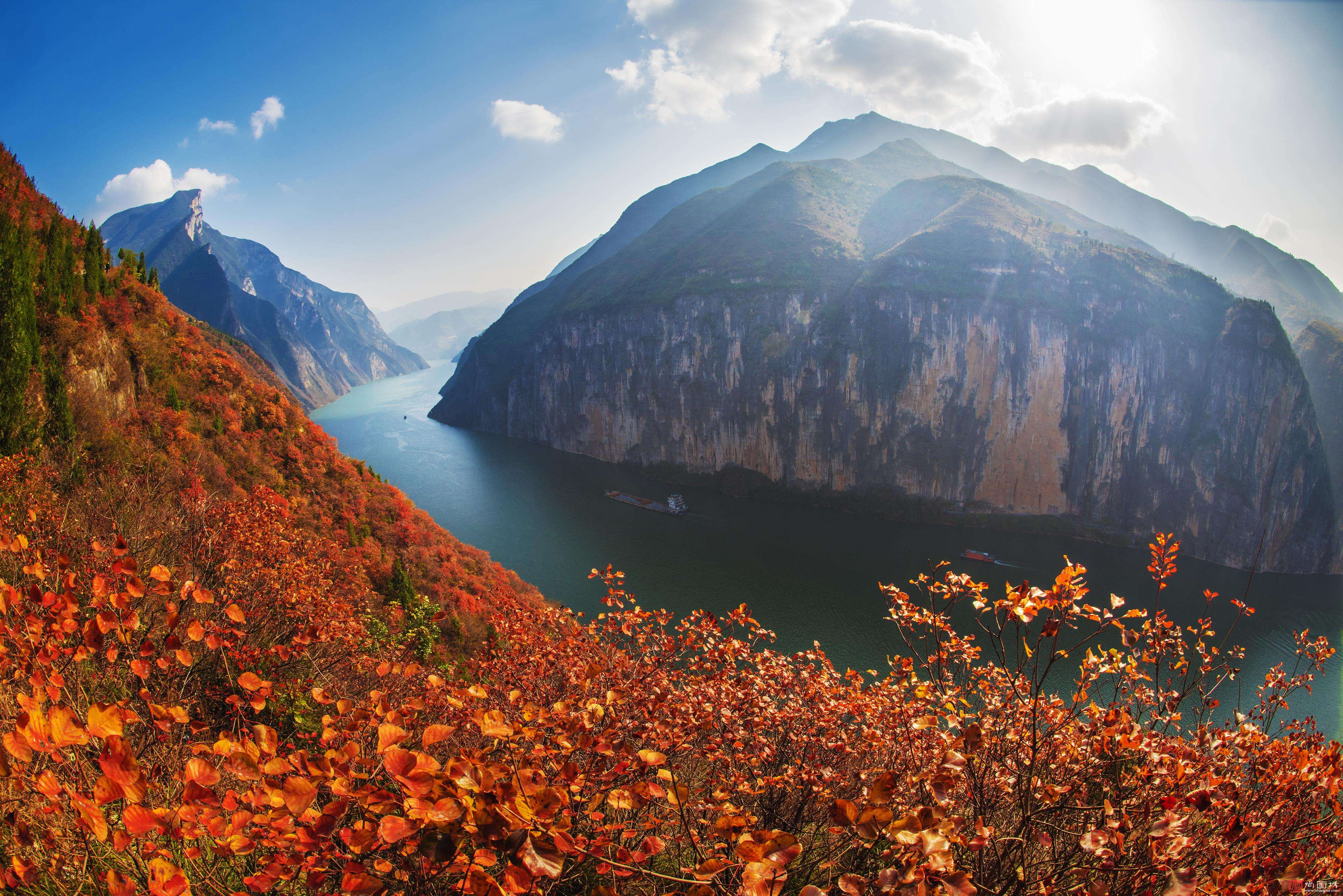 瞿塘峽雖然僅八公里長,卻是最令人屏息的一段江峽。兩岸如削,巖壁高聳,大江在懸崖絕壁中洶涌奔流,自古就有“險莫若劍閣,雄莫若夔”之譽。瞿塘峽是三峽中最短的一個峽,西起重慶奉節縣的白帝城,東到巫山縣的大溪鎮,全長雖然只有8公里,但卻有“西控巴渝收萬壑,東連荊楚壓群山”的雄偉氣勢。在三段峽谷中,它最短,最狹,最險,氣勢和景色也最為雄奇壯觀。其“雄”首先是山勢之雄。游人進入峽中,但見兩岸險峰上懸下削,如斧劈刀削而成。山似拔地來,峰若刺天去。峽中主要山峰,有的高達1500米。瞿塘峽中河道狹窄,河寬不過百余米。最窄處僅幾十米,這使兩岸峭壁相逼甚近,更增幾分雄氣。其中峽之西端的夔門尤為雄奇。它兩岸若門,呈欲合未合之狀,堪稱天下雄關。瞿塘之雄還在于水勢之雄。古人詠瞿塘:“鎖全川之水,扼巴蜀咽喉”。瞿塘峽雖然較短,但峽小景不少。我們將上溯逐一游覽。