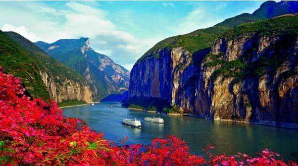 在長江的白鹽山上,有一塊巖壁的顏色和其他地方不一樣,呈現出粉紅色,這里就叫做粉壁墻。而在粉壁墻上,則有著名的瞿塘摩崖題刻。在這些眾多的摩崖題刻里,比較有名的、也可以說形體比較大,大家在船上能清晰地看見的有兩個,一個是由孫元良將軍寫的“夔門天下雄,艦機輕輕過”,寫出了瞿塘峽特色所在;另一個是著名的愛國將領馮玉祥將軍所寫的“踏出夔巫,打走倭寇”,以激勵由此出川抗日的將士。