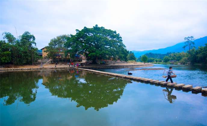 百年老榕、神奇土樓,還有那靈山碧水,無不給人以超然的感覺。南靖縣長教風景區擁有世界文化遺產和貴樓、懷遠樓、省內最高最大最為集中的千年古榕樹群、一條百年老街、千年古道。版權所有山東聊城聊之旅國際旅行社有限公司,轉載必究!溪岸邊,由13棵百年、千年老榕組成的榕樹群蔚為壯觀,其中一棵老榕樹樹冠覆蓋面積1933平方米,樹丫長達30多米,樹干底端要10多個大人才能合抱,是一棵目前我省已發現的最大的榕樹。榕樹下一條被踩磨得非常光滑的鵝卵石古道伸向遠方,據考證是長汀府(龍巖市)通往漳州府(漳州市)的必經之路。古道旁,有一排兩層老式磚木結構房屋,那就是長教已有數百年歷史的老街市。至今,這些老商鋪大多還保留著木板代墻的特點。村中最引人注目的是山腳下、溪岸旁、田野上星羅棋布的一座座土樓。這些從元朝中期就開始建造的土樓,目前保存完好就有53座。這些土樓姿態萬千,除了有建在沼澤地上堪稱“天下第一奇”的和貴樓,及工藝最精美、保護最完好的雙環圓土樓——懷遠樓外,還有吊腳樓、竹竿樓、府第式土樓等,土樓風景別具一格。云水謠古鎮也是漳州著名的僑鄉。據《長教簡氏族譜》記