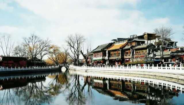 元代營建新大都后這里已是船泊必經之處,兩岸商事繁華,又是風景勝地。遼、金時代雖是郊外,數公里長的水系兩岸也應有便橋方便來往。明代史籍已有明確的記載。解放初期,當我們站在銀錠橋頭平目西望,遠處藍天下的青山綿延起伏,湖邊搖曳的柳絲楚楚動人,猶如掛在空中美麗的巨幅圖畫,每當夕陽西下,金色的余輝從山后撒播在湖面上,微波粼粼,金光閃閃,迷人的湖光山色令人流連忘返,可惜后來的煙囪和高樓大廈嚴重地破壞了京城這難得的獨特景觀,但愿這遺憾和教訓不再發生。