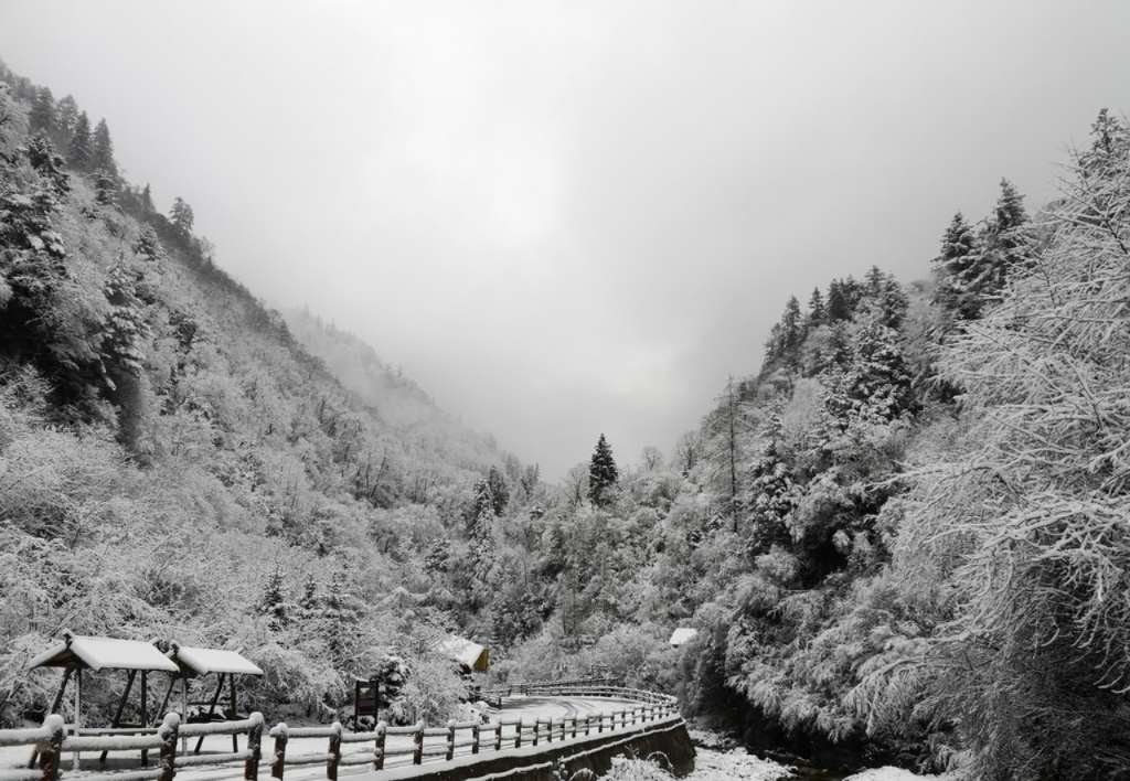 官鵝溝山俊。群山錯落,綠水環繞,古樹差天,氣象萬千,秀麗處山體你拉我牽,婀娜多姿;雄偉處絕壁懸崖直插云霄,氣勢恢宏,蔚為壯觀,處處都是山水畫。 官鵝溝奇險。在湖泊和雪山之間,9道險峻深幽的峽谷讓人驚嘆不已。在長數百米、高數百米、寬僅十米的各種形態峽谷中,河水震耳欲聾,涼風撲面而來,懸崖古松掩日,瀑布飛瀉直下,游人至此,膽小者害怕至極,有身處絕境之感,如此鬼斧神工的自然奇觀,實屬國內之罕見。一詩人欣然賦詩: 攬勝偏憐日月長,鵝溝炎夏水風涼。奇峰疊翠通幽谷,雪浪噴珠瀉石梁。 萬木欣榮青帶玉,重崖森迥瀑飛先,綠蔭滿抱姿游興,珠粉巖邊野卉香。