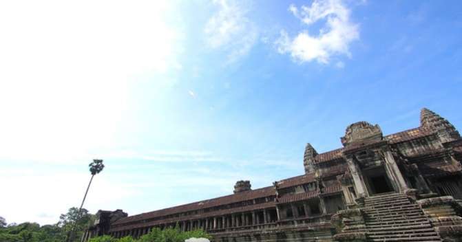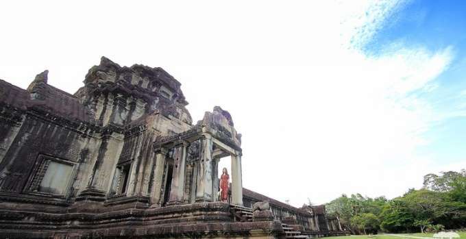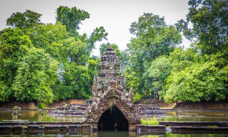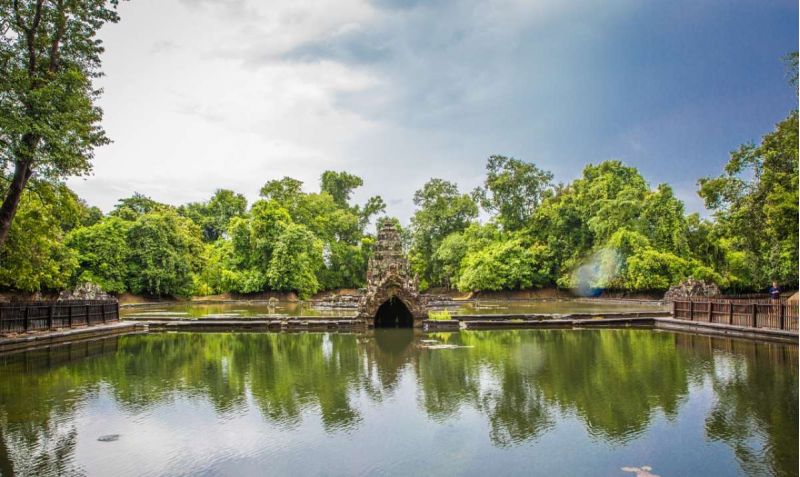 涅盤宮(Neak Pean)的意思是纏繞的巨蛇,就這么小小的神廟,在水中央,在藍天白云的襯托下,亭亭玉立,美得像一顆水中明珠。