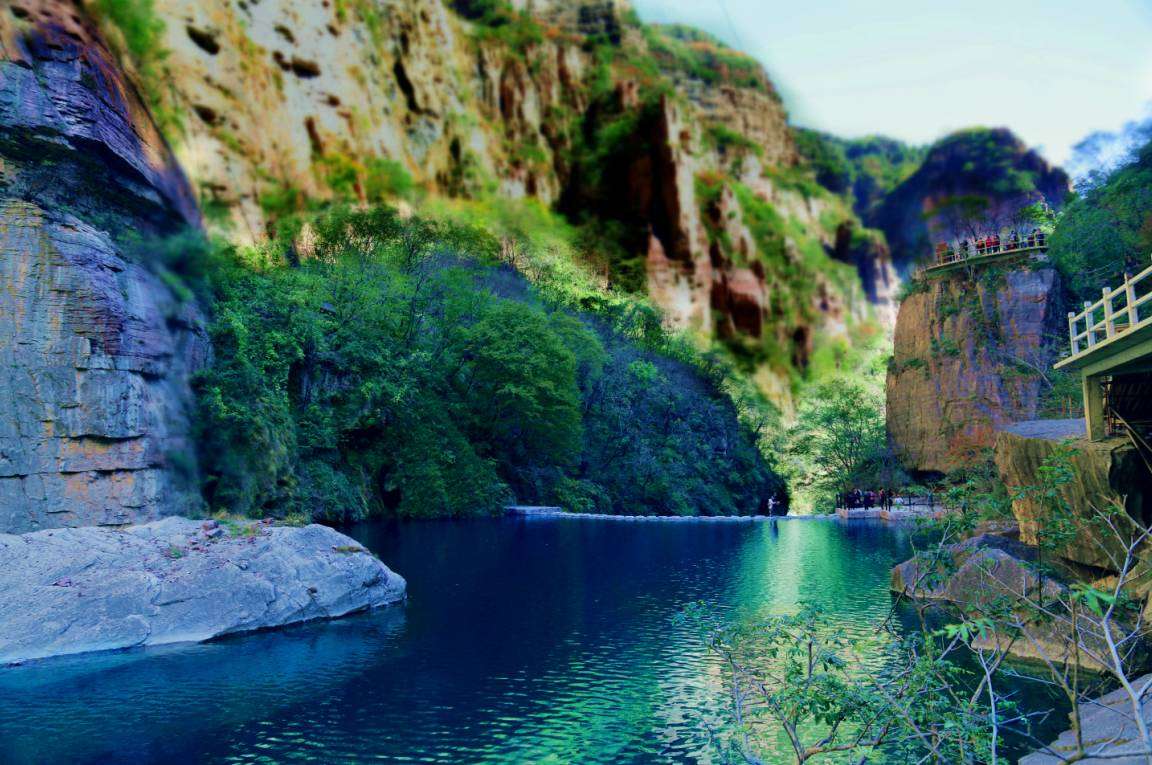 景區內高山林立,峽谷萬丈,森林繁茂,水源充沛,澗潭、瀑布、涼亭密布,保留著讓人嘆為觀止的靈山秀水和原始美態。這里集雄、秀、奇、幽于一體,攬山、水、林、洞于一身,專家贊譽“貴在原始,美在天然”,人稱‘中原小九寨’。
