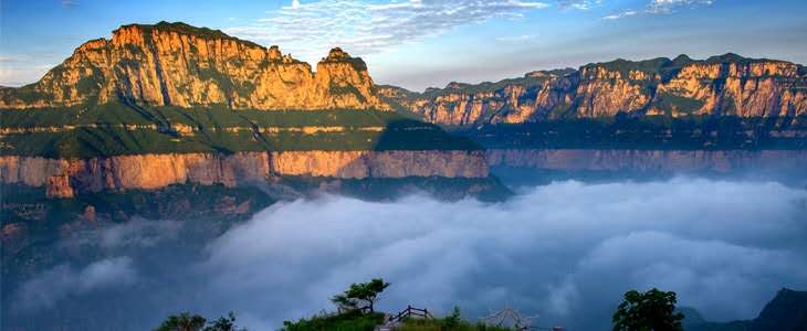 因“天下鐵頂(老爺頂)”處在一座四面絕壁環崖,如“太行第一紅巖峽谷”里的孤峰云島之上。太行云海勝景因地勢、海拔和氣候常在“天下鐵頂(老爺頂)”四周峽谷蒸騰升起,其勢洶涌澎湃,宛如海浪翻卷。版權所有山東聊城聊之旅國際旅行社有限公司,轉載必究!蒼蒼古跡惹隱惹現,猶如仙山瓊閣。煙云鎖太行,置身云頂上。讓游人:“身臨天下第一頂,鳥瞰峽盆稀世景,云海飄波人欲醉,霧濤拍浪山已醒”。