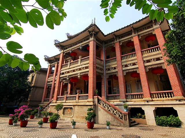 海天堂建于1921年,位列鼓浪嶼十大別墅之一,是鼓浪嶼上唯一按照中軸線對稱布局的別墅建筑群,為菲律賓華僑黃秀烺購得租界洋人俱樂部原址所建,以中樓最有個性,“是宮非宮勝似宮,亦殿非殿賽過殿;不中不洋不尋常,中西結合更耐看。”這在鼓浪嶼也是獨一無二的。