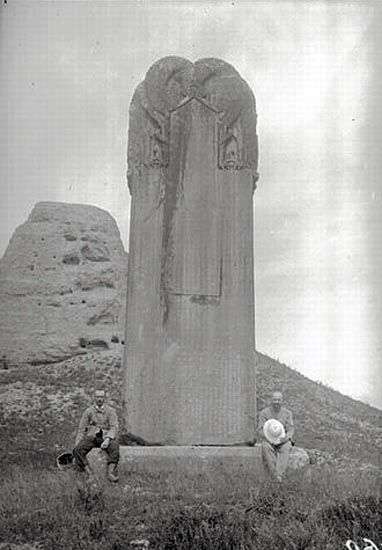 乾陵引人注目之處,還有朱雀門外的神道東西兩側,分布著的兩組石人群像。石人群像整齊恭敬地排列于陵前,西側32尊,東側29尊,共61尊。這些石人是當時唐王朝屬下的少數民族官員和鄰國王子、使節,唐高宗入葬時前往參加葬禮,武則天為炫揚大唐威勢,將他們雕像立于陵前。在石人像的背部刻有國別、官職和姓名,今字跡可辨認者有“木俱罕國王斯陀勒”、“盛于闐王尉遲璥”、“吐火羅王子持羯達犍”、“默啜使移力貪汗達干”、“播仙城主何伏帝延”等七尊。