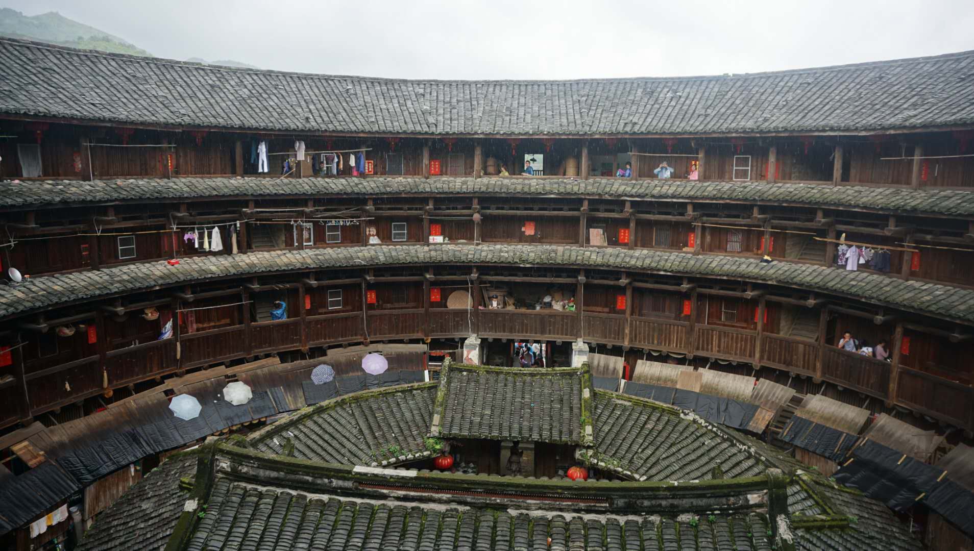 土樓不僅在建筑風格上特色鮮明,大多數土樓的命名也寓意雋永、意味深長。土樓作為福建客家人引為自豪的建筑形式,同時又揉進了人文因素,堪稱“天、地、人”三方結合的縮影。數十戶、幾百人同住一樓,反映客家人聚族而居、和睦相處的家族傳統。因此,一部土樓史,便是一部鄉村家族史。土樓的子孫往往無須族譜便能侃侃道出家族的源流。