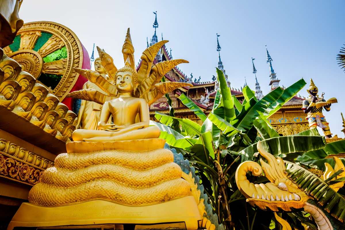 佛教文化區有享譽東南亞的西雙版納總佛寺——瓦叭潔,和白塔、八角亭、放生湖在這里您可以通過進香,拜佛栓線、放生等佛事活動和參觀貝葉經領略濃郁的南傳上座部佛教文化。