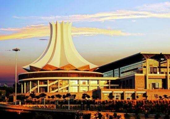 在會(huì)議中心首層,分布著5個(gè)大型會(huì)議廳,分別為101-105號(hào)會(huì)議廳,它們的結(jié)構(gòu)布局恰好形成了一個(gè)完整的圓形,周邊還設(shè)有餐廳等附屬設(shè)施。101號(hào)會(huì)議廳為國(guó)際報(bào)告廳,在5個(gè)會(huì)議廳中最為搶眼,它呈下沉式、階梯型,使用面積590平方米,可容納400人。該廳以棕色和黑色為主色調(diào),給人以強(qiáng)烈的莊重感,紅色座椅按從低到高、從窄到寬的扇形來(lái)布置,無(wú)論哪個(gè)角度都能保持良好、不受阻擋的視線。在所有會(huì)議廳中,它所配備的設(shè)備也是最為先進(jìn)的,擁有7+1同聲傳譯系統(tǒng),可以滿足國(guó)際會(huì)議的多語(yǔ)種翻譯需要。