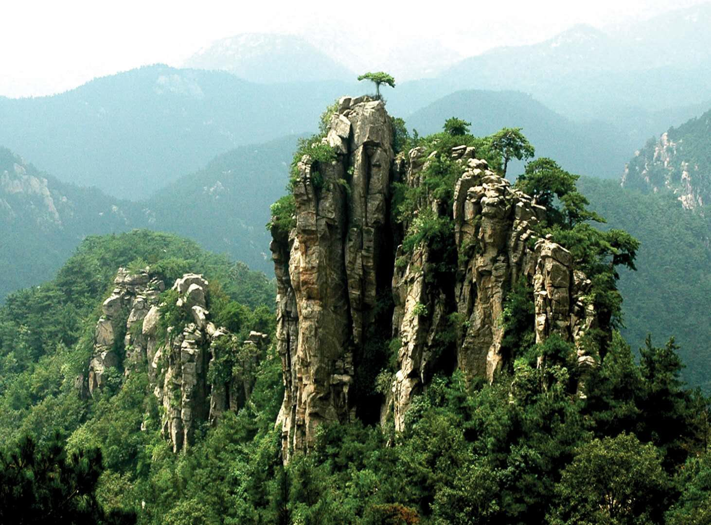 即蒙山主峰,海拔1156米,為山東第二高峰,有“亞岱”之稱。龜蒙頂原酷似龜狀,頭向西北,尾列東南,像神龜俯臥于云端天際。現峰頂呈穹窿狀,東部有玉皇殿,西部有孔子小魯處和迎客松。登上龜蒙頂,云在身邊轉,風從足下生,遠望齊魯小,使人心胸頓開。