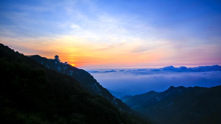 玉皇頂為沂山最高峰,上有玉皇閣、玉皇廟、望海亭、探海石、太清洞等。如在晴日的初晨,立于玉皇頂探海石側,可欣賞到海上日出的奇觀。