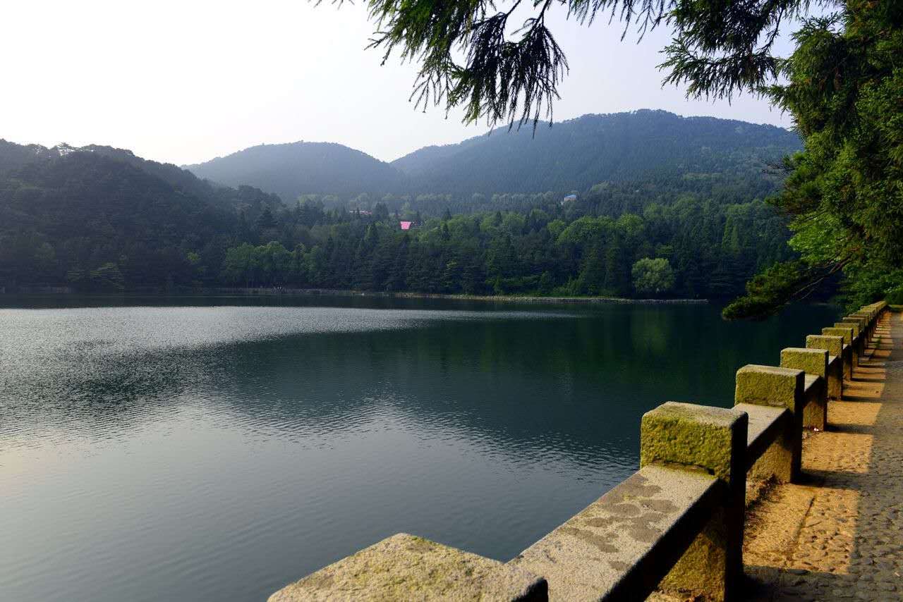 湖水潔凈清澈,版權所有山東聊城聊之旅國際旅行社有限公司,轉載必究!碧清如鏡,山色倒影,相映成趣。湖心有兩小亭,外觀秀麗、精巧,為湖面增光添彩,內則分別用作汲水塔和溢洪道。
