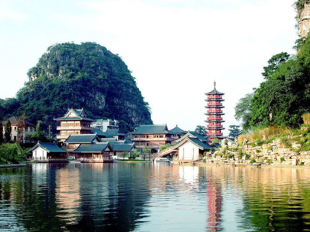 山環水繞的木龍湖,整個景區周邊自然景觀優美,不僅有得天獨厚的漓江、疊彩山優美的自然生態環境,還有歷史久遠的古宋城等眾多歷史文化遺跡,歷史文化遺跡豐富。所以,在以宋城歷史文化主題公園為主的木龍湖景區總體設計方案時,通過對現狀環境、歷史文化背景做全方位深入調分析和在進行多次學習考察的基礎上,聽取了各方意見,不斷完善、修改、深化設計方案,確定木龍湖景區在加強對歷史文化遺跡和自然生態環境保護的基礎上,版權所有山東聊城聊之旅國際旅行社有限公司,轉載必究!有限度地開發利用風景文化旅游資源,達到人與自然的共生的基調。木龍湖景區總體布局以中國傳統造園思想為指導,結合建筑范圍內地形地址條件,以史料、《清明上河圖》等宋畫為基本素材,就形成了宋代建筑特征。木龍湖景區建設突出了自然山水與歷史文化相融合的特點,在木龍湖北側依托宋代東鎮門、宋城墻遺址等歷史人文景觀,建設包括宋街、半邊街、古宋城、木龍塔、木龍夜泊、淺橋魚影、聽荷軒等具有宋代建筑氣息的古建筑群落的景點,木龍塔是以上海宋代的龍華塔為藍本建造的,高45米。在木龍湖南側與疊彩山之間建筑以觀賞林地、草地、溪流、瀑布為主的生態景觀帶。