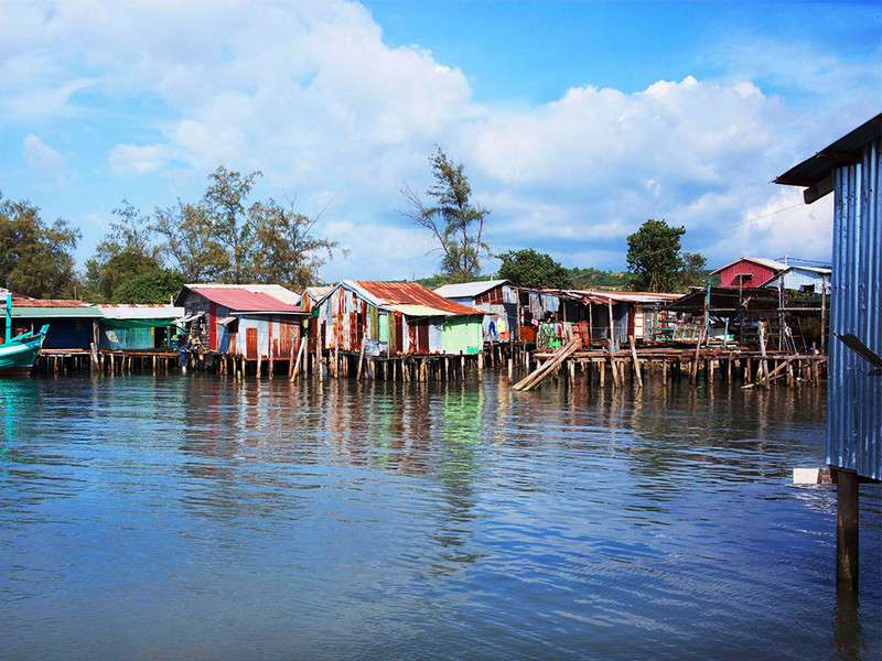有快船每天開往西哈努克城(600泰銖,4小時,8am發車),由西哈努克城來此的快船正午開船。這些快船是為河上航行設計的,所以遇上大風就會十分顛簸。如果陸路維持現狀,則可以揚長避短,在雨季走水路,旱季走陸路,避免暈船。