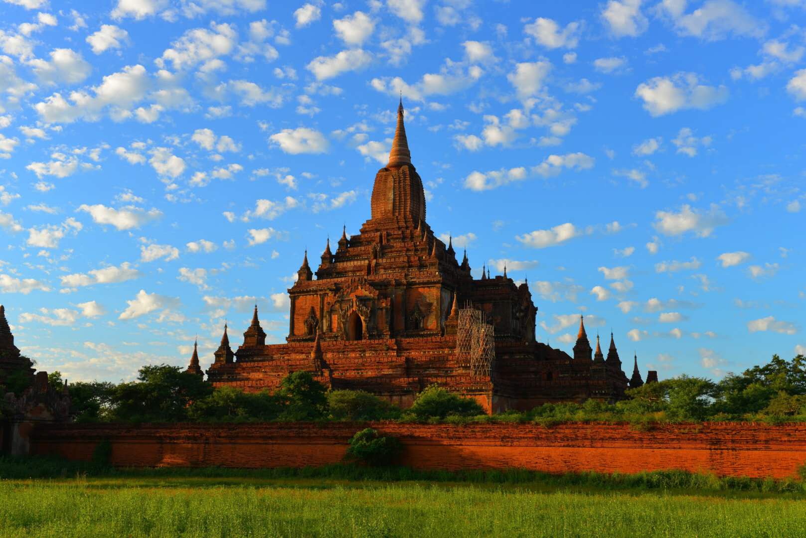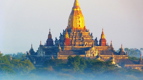 蒲甘王朝是由阿奴律陀國王(King Anawrahta,1044年至1077年在位)于1044年建立,為緬甸第一個(gè)統(tǒng)一的帝國,以上座部佛教為國教。阿諾耶塔國王相繼征服撣族和孟族,也不斷擴(kuò)展領(lǐng)土。在阿朗西都國王(King Alaungsithu,1111年至1167年在位)掌政時(shí),上座部佛教逐漸成為主流,并在13世紀(jì)初期達(dá)到頂盛。當(dāng)時(shí)建造的3000余座寺廟尚有100座保存至今。1287年蒙古統(tǒng)治者忽必烈(Kublai Khan)率領(lǐng)元朝軍隊(duì)大肆入侵(元緬戰(zhàn)爭(zhēng))而使得蒲甘王朝失去了獨(dú)立性,不久后滅亡。
