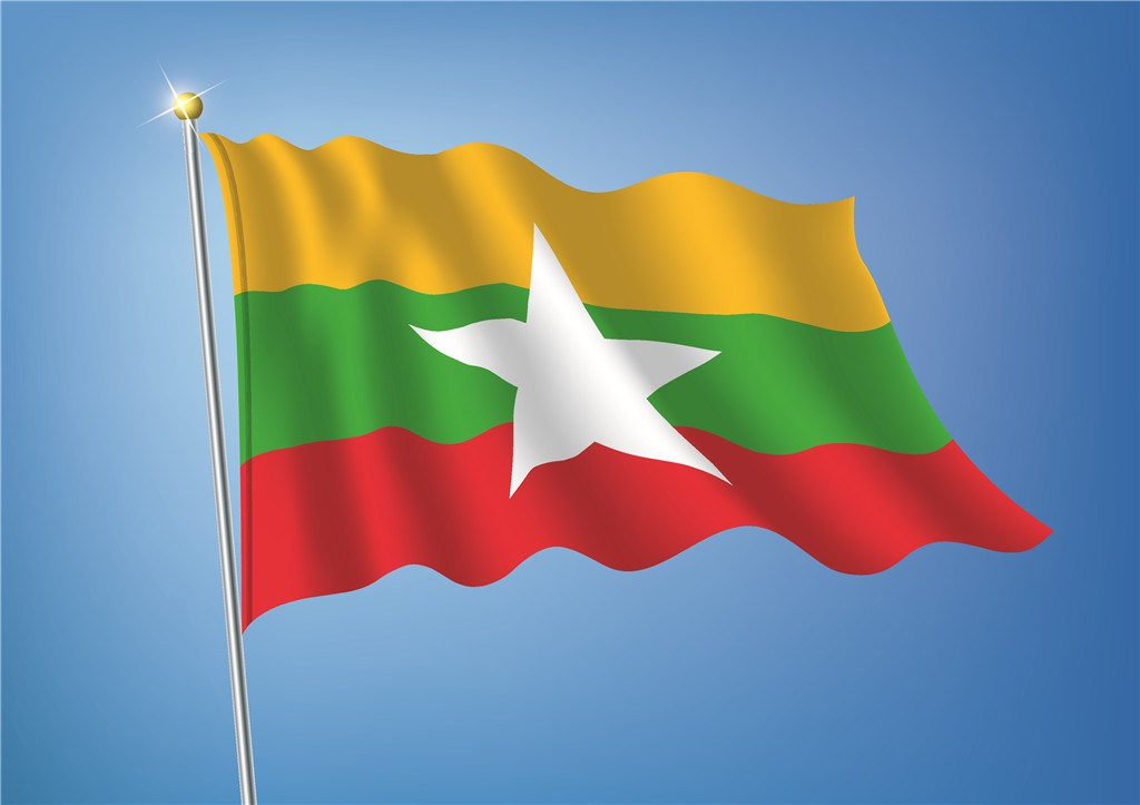 2010年10月21日,根據(jù)緬甸國家和平與發(fā)展委員會(huì)21日頒布的法令,緬甸正式啟用《緬甸聯(lián)邦共和國憲法》確定的新版緬甸國旗和國徽,國歌保持不變。緬甸的新國旗為黃綠紅三色,中有白色五角星。綠色代表和平、安寧、草木茂盛、青蔥翠綠的環(huán)境,黃色描繪出團(tuán)結(jié),紅色象征勇敢與決心,白星反映出堅(jiān)強(qiáng)聯(lián)邦永恒不墜的意義。