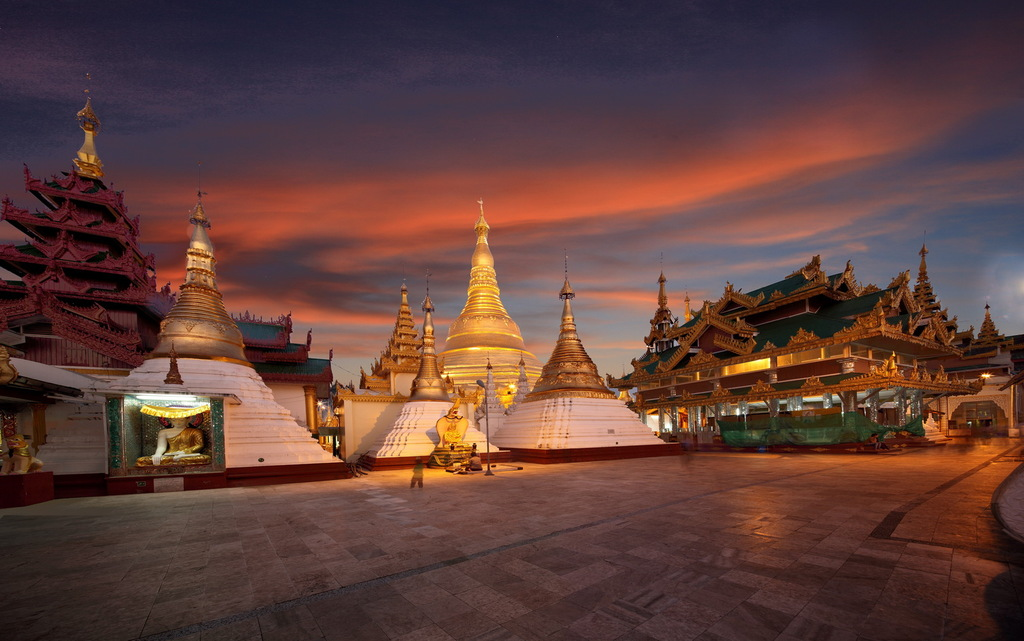 大金塔是仰光最具代表性的景點(diǎn),塔高110米,坐落于市內(nèi)一座小山上,表面涂有72噸的黃金,塔頂由近3000克拉的寶石鑲嵌而成。整個(gè)建筑群非常雄偉,在陽光的照射下顯得奪目而耀眼。傳說是保存有佛祖八根頭發(fā)的商人兩兄弟建成,已有2500年的歷史。