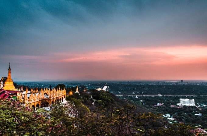 曼德勒的名字也是來自這座城內(nèi)最高的山丘——曼德勒山。當(dāng)年釋迦牟尼宣揚(yáng)佛法時(shí)路過此山,指著山下廣袤的土地,預(yù)言2400年后,這里會(huì)出現(xiàn)一座繁華的大城。曼德勒果然不負(fù)所望,在敏東國王的統(tǒng)治下,30年的榮景在歷史中點(diǎn)綴成不朽的一頁。