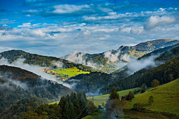 在這里,樹林逐漸被草地間隔分開,風光漸漸向著瑞士風格靠近。站在黑森林中海拔最高的費爾德貝格峰上眺望,沒有一覽眾山小的氣勢,有的只是美不勝收的萊茵平原,清新美麗的瑞士西部風景和宏偉壯觀的法國斯特拉斯堡大教堂,各種景色揉合在一起,能讓你忘了身在何處。