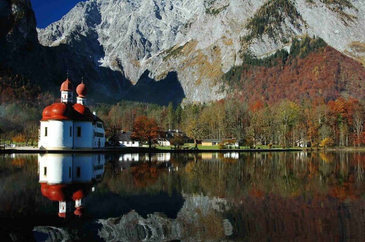 貝希特斯加登被阿爾卑斯山所環抱,其中的瓦茨曼山脈(Watzmann)的山峰高達1300至2500米的山峰,是德國的第二高峰,另一座耶那峰(Jenner)高1874米。版權所有山東聊城聊之旅國際旅行社有限公司,轉載必究!距離貝希特斯加登約3公里處是碧綠的國王湖,國王湖是狹長8公里的山間湖泊,湖邊有座白墻紅頂的圣巴多羅買禮拜堂(St.Bartholoma)。