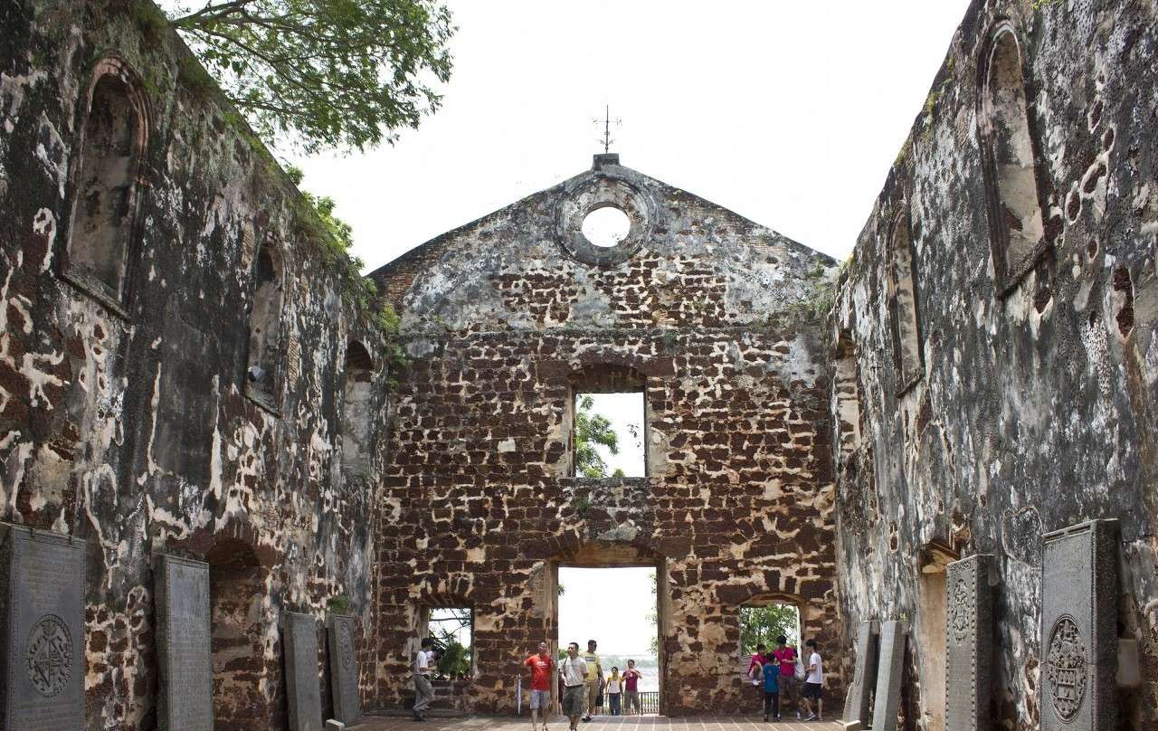 中文名馬六甲圣保羅教堂又名西山建設人葡萄牙人始建時間1521年。