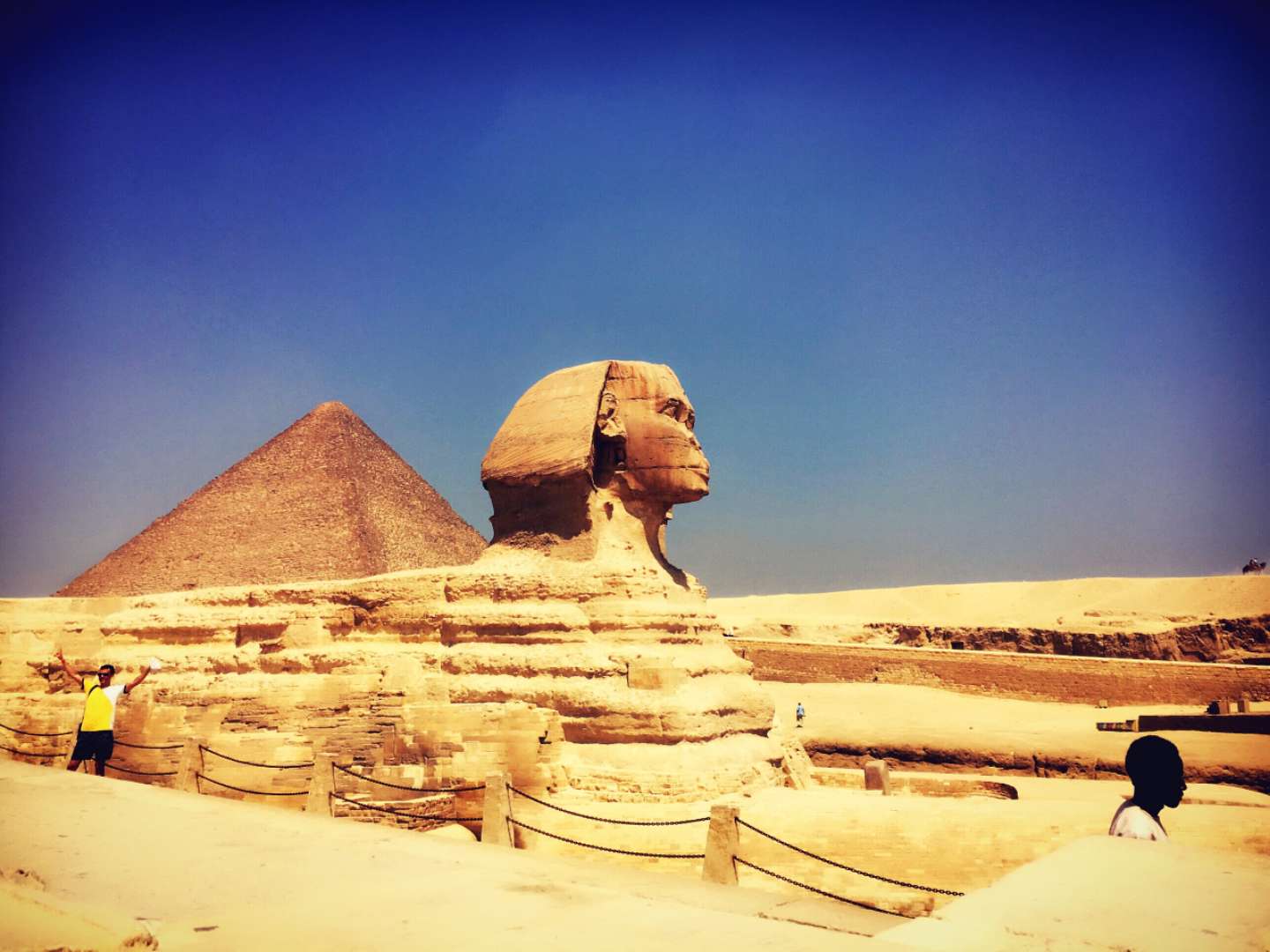 如果不說(shuō)金字塔是世界奇觀,就不能說(shuō)是到過(guò)了埃及。從開(kāi)羅西行數(shù)公里,來(lái)到吉薩村前。在便屹立眼胡夫金字塔東側(cè),便是獅身人面像,它以誘人的魔力,吸引了各地的游客。“怪物”--斯芬克斯獅身人面像的頭像,真的是以胡夫作模特兒的嗎?不過(guò)比較可惜的是獅身人面像的鼻子被打破了,有損美觀及協(xié)調(diào)性。
