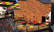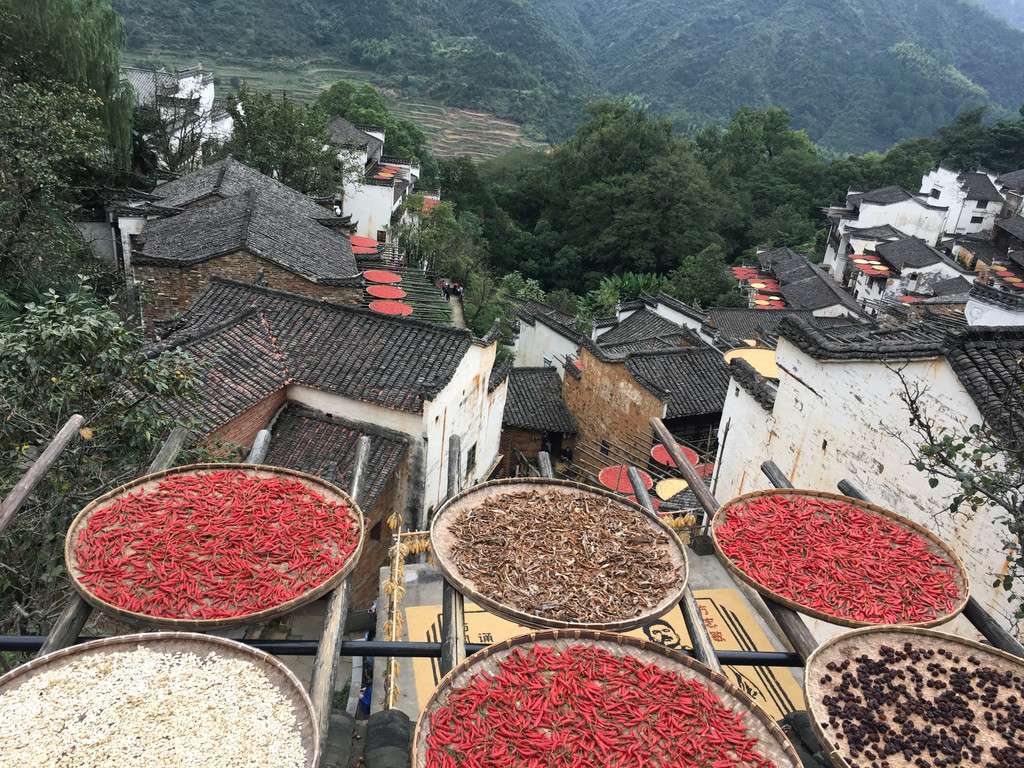 為慶祝首個“中國農民豐收節”,篁嶺家家戶戶房前屋后晾曬的農作物,將篁嶺古村裝扮。 古村內有鄉村美食、農耕體驗等系列活動,打麻糍、磨辣椒、做月餅,游客與農民一起慶豐收、曬豐收、享豐收。