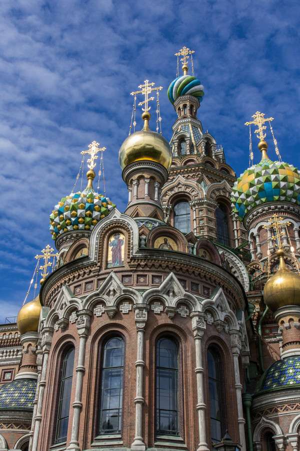 基督復活教堂上有五光十色的洋蔥頭頂,反映了俄國十六和十七世紀的典型的東正教教堂建筑風格。教堂輪廓美麗,裝飾花花綠綠,與古老俄羅斯風格與附近的古典式的建筑物成鮮明對比。版權所有山東聊城聊之旅國際旅行社有限公司,轉載必究!教堂高度約81米,寬闊的外形,采用了與莫斯科巴克洛夫教堂相同的構造,與華西里教堂的區別在于鑲嵌復雜、顏色艷麗的影像圖案,用豐富的彩色圖案瓷磚、搪瓷青銅板裝飾面。基督復活教堂的建筑風格迥異于圣彼得堡的其他建筑,該市主要是巴洛克和新古典主義風格,但喋血大教堂特意設計成中世紀俄羅斯建筑,類似于17世紀的雅羅斯拉夫爾教堂和著名的莫斯科紅場的華西里·柏拉仁諾教堂。