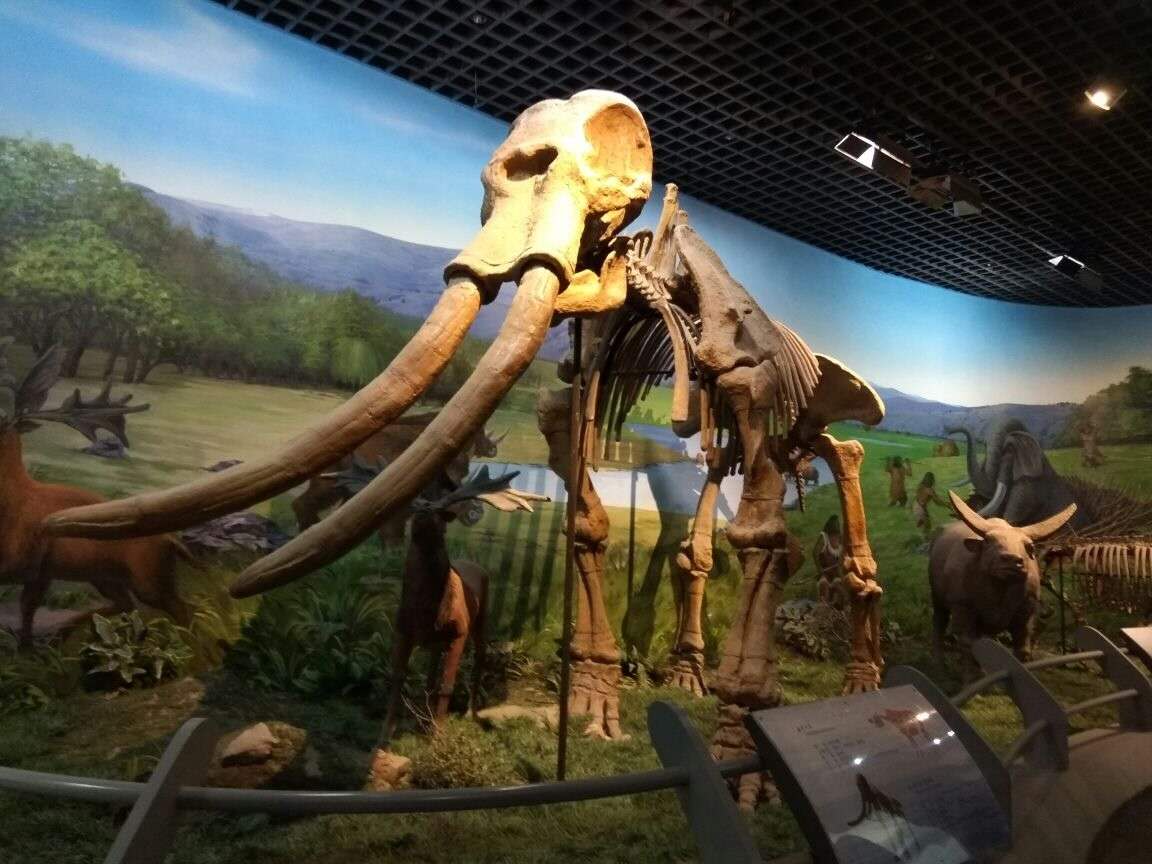 披毛犀全體骨架:體長3.5米,高1.7米,晚更新世。1964年于內蒙古鄂爾多斯市烏審旗薩拉烏蘇發現。