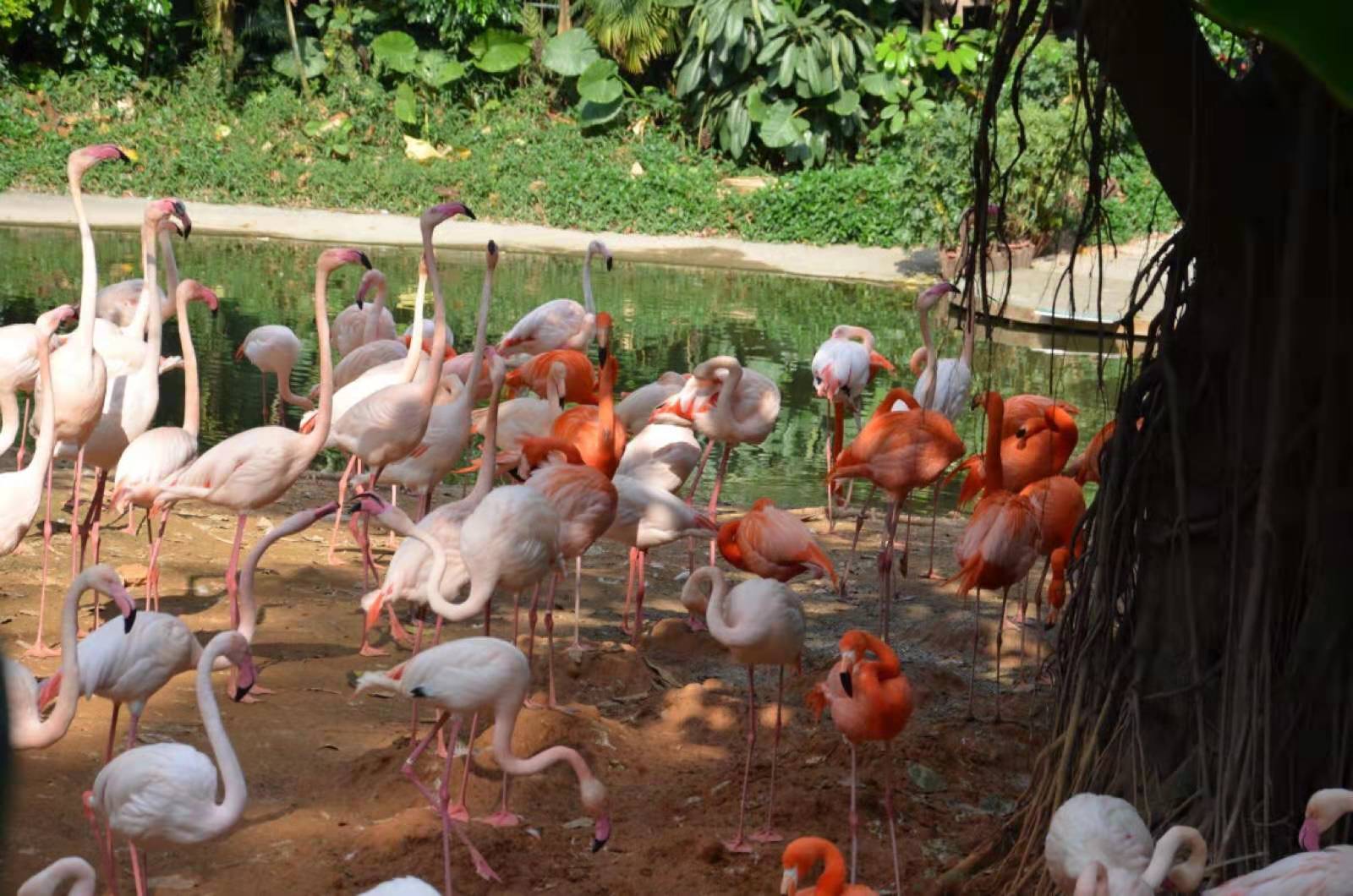 亞馬遜雨林位于南門入口,這里有一片霧氣彌漫的雨林中心,這里正是成百只火烈鳥的家,火紅的火烈鳥把綠意盎然的島變成了火燒島,熱鬧而聒噪的火烈鳥叫聲顯示出這片雨林無限的活力。游客可以選擇環湖綠道或者熱帶雨林小道兩條路線進行參觀:綠道可以欣賞雨林全貌,而小道也是觀景也是別有風味,可以沿途觀賞多種珍稀植物。行走于熱帶雨林小道深入到雨林區的核心,為了模擬雨林的濕氣和生態,沿途安裝了高科技噴霧裝置,即使在炎炎夏日,行走在雨林小道,仿佛如行走在真正的熱帶雨林一般涼爽濕潤。