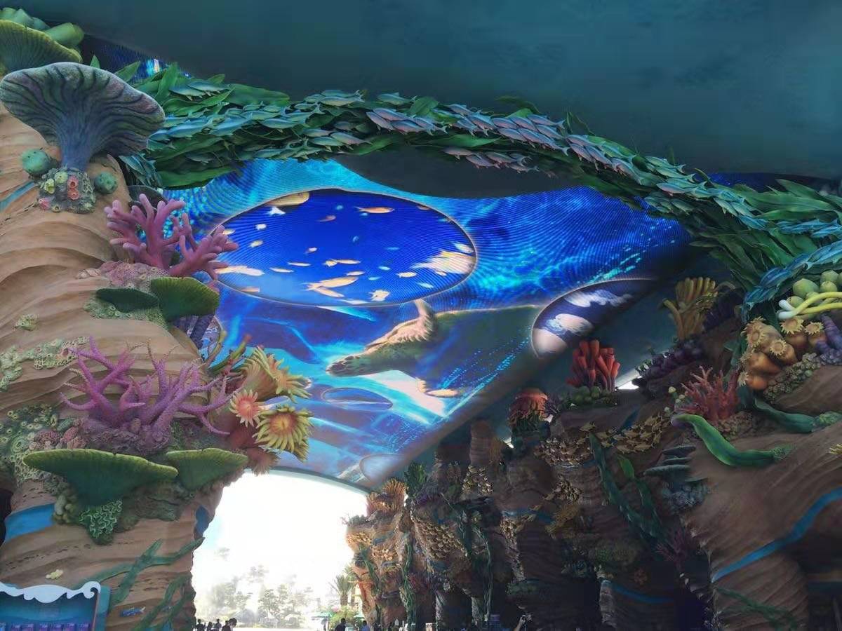 圍繞著世界上最大的海洋館,長隆海洋王國還創造性推出了"海底互動船"和“海底餐廳”兩大項目。“海底互動船”是實景式娛樂互動性場景體驗項目——深海歷奇,游客可搭乘“蛟龍號”潛水器,下潛至7000米海底,在“泡泡”的領航下穿越迷離漩渦,跨越深海火山,途經巨藻森林并邂逅鯊魚捕食狂潮,經歷一場場難忘的深海歷奇之旅。