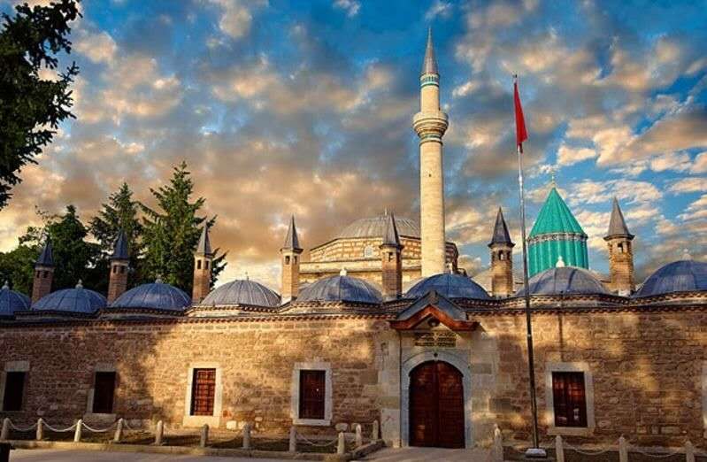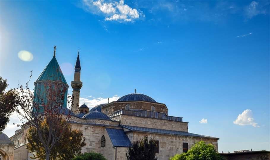 梅烏拉那陵墓使用鮮艷的綠顏色的瓷磚,是孔亞最有名的建筑。陵墓展示著梅烏拉那的著作和與教團(tuán)有關(guān)的工藝品。每年12月上旬舉行盛大的旋舞祈禱儀式。