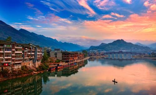 濯水古鎮位于重慶市黔江區東南角濯水鎮境內,地處烏江主要支流阿蓬江畔,距黔江主城26公里,渝懷鐵路、渝湘高速公路、國道319線穿境而過,距舟白機場26公里,交通便利,是國家AAAA級景區、國家級歷史區文化名鎮。是一個集土家吊腳樓群落、水運碼頭、商貿集鎮于一體的千年古鎮。
