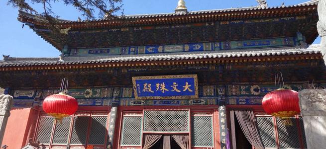 寺內最著名的建筑是文殊閣(大殿),現存殿宇為明弘治二年(1489)由鐵林果禪師主持修建的。大殿面寬五間,進深三間,重檐九脊歇山頂,是五臺山臺懷中心區最大的殿宇。殿內正中佛臺上供奉的文殊騎獅塑像,高近十米,是五臺山諸寺中最高大的一尊文殊塑像。
