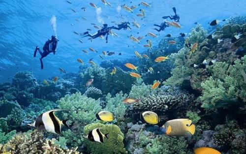 涉足觀魚:即使沒有受過潛水訓(xùn)練,也絕對可以享受潛水觀魚的樂趣。戴上面罩,撲在海面上向下看,近距離欣賞美麗的珊瑚,五顏六色的熱帶魚從身邊游過,尤其是紅色的大魚,很讓人驚奇,30米外便有如懸崖般的落差,但這里也是魚兒最多的地方。在陽光的照射下,海底世界美得如夢如幻。一會(huì)兒,一大群黑色的魚群游過來,不一會(huì)兒又有一大群白魚從身邊穿過。運(yùn)氣好的話,可見到小鯊魚和魔鬼魚。