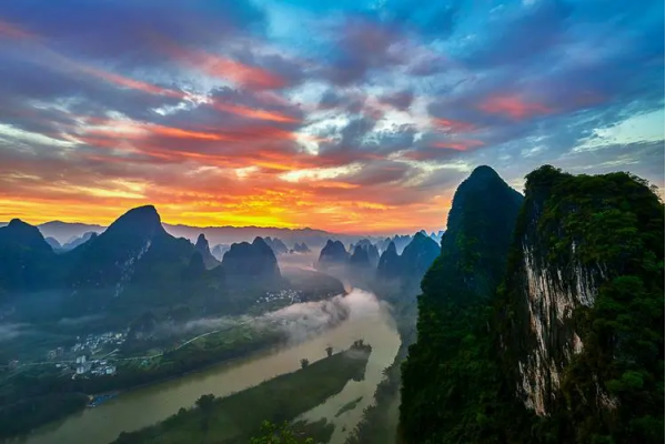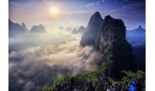 相公山位于陽朔縣興坪鎮內,距陽朔約28公里,距桂林約57公里。登上相公山舉目遠眺,群峰排列有序,蜿蜒流淌的漓江甚是美妙。這里的云海、日出、光影、彩霞吸引著無數攝影愛好者和攝影家。前往相公山有陸、水兩條路可行,可以從陽朔或者桂林到葡萄或白沙下車后再租車直接到達山腳下,也可從陽朔直接租車或自駕車經白沙往右朝古板方向走到達拍攝地。水路從興坪租船經過黃布灘到達山腳下,在步行上山。登相公山一般都要再天亮前爬到山頂,拍攝日出、云海、彩霞