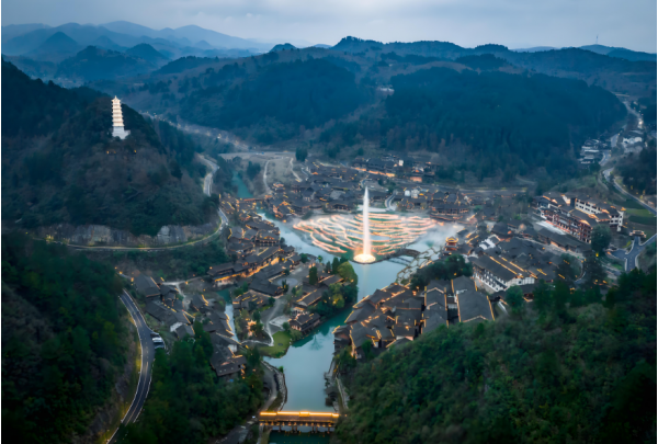 20249月,貴州烏江寨國際旅游度假區利用獨特的民族風格建筑打造出一場水火交融的超震撼舞臺,推出非遺打鐵花、震撼火壺秀、鳳凰飛天、花燈游園會、無人機燈光秀等精彩節目。