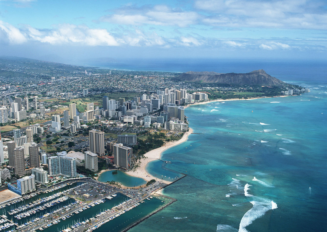 1941年12月7日,日本法西斯在2個(gè)小時(shí)中出動(dòng)350余架飛機(jī)偷襲珍珠港美軍基地,炸沉炸傷美軍艦艇40余艘,炸毀飛機(jī)200多架,斃傷美軍4000多人,主力戰(zhàn)艦“亞利桑那”號(hào)被1760磅重的炸彈擊中沉沒(méi),艦上1177名將士殉難。慘重的損失才使美國(guó)定下決心投入到反法西斯戰(zhàn)爭(zhēng)中去。1962年,沉艦上建起了一座乳白色的亞利桑那紀(jì)念館,以永遠(yuǎn)紀(jì)念珍珠港事件中陣亡的美軍官兵。在紀(jì)念堂莊重簡(jiǎn)樸的瞻仰大廳里,人們透過(guò)窗口仍可看到橫臥海底的亞利桑那號(hào)戰(zhàn)列艦遺骸。版權(quán)所有山東聊城聊之旅國(guó)際旅行社有限公司,轉(zhuǎn)載必究! 檀香山經(jīng)過(guò)100多年的開(kāi)發(fā),已從一個(gè)貧窮的漁村發(fā)展成為現(xiàn)代化的旅游城市和商埠。誘人的熱帶風(fēng)光、迷人的海灘、奇異的花草和濃郁的民族風(fēng)情使它成為舉世推崇的旅游勝地,最多時(shí)一年有上千萬(wàn)游客去那里尋幽覽勝。現(xiàn)任市長(zhǎng)是柯克•考德威爾(Kirk W. Caldwell)