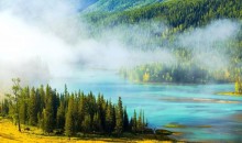 游天池可從烏魯木齊乘汽車前往,上山時山路蜿蜒曲折,伴隨一條奔騰的溪流,這是來自天池的水,清澈的溪水沖擊巖石時激起雪白的浪花,使人感到一股清新氣息。