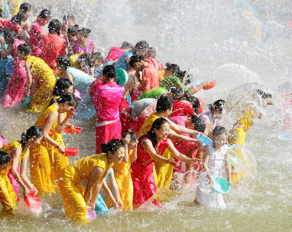 人們先至佛寺浴佛,然后互相潑水,用飛濺的水花表示真誠的祝福。到處歡聲笑語,充滿了節日氣氛。