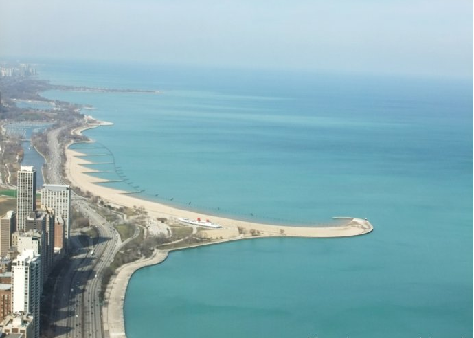 密歇根湖也叫密執(zhí)安湖,是北美五大湖中面積居第三位,唯一全部屬于美國的湖泊。湖北部與休倫湖相通,南北長517公里,最寬處190公里,湖盆面積近12萬平方公里,水域面積57757平方公里,湖面海拔177米,最深處281米,平均水深84米,湖水蓄積量4875立方公里,湖岸線長2100公里。有約100條小河注入其中,北端多島嶼,以比弗島為最大。面積5.8萬平方公里。最深282米,深度由北向南漸減。湖面海拔177米,與休倫湖相當(dāng),借麥基納克水道相連。與密西西比河則借伊利諾伊—密歇根運(yùn)河相通。