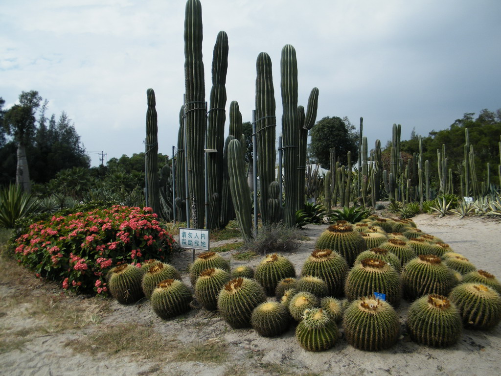 沿環(huán)山公路行至半山腰,便是仙人掌世界。占地面積4萬(wàn)平方米,主展區(qū)含室外展區(qū)和展覽溫室兩大部分。室外展區(qū)的大型多肉植物和仙人掌類雄偉壯觀,在室外進(jìn)行大規(guī)模的仙人掌植物造景,這在國(guó)內(nèi)還是第一次。這里有從澳大利亞引進(jìn)的形如巨瓶的瓶干樹(shù),體型高大的象腿樹(shù)、酒瓶蘭、露兜樹(shù)和各種仙人掌:展覽溫室里形態(tài)各異的仙人掌與多肉植物爭(zhēng)奇斗艷,這里有國(guó)內(nèi)自行栽培最大的,在全國(guó)首屆花博會(huì)、香港花卉展覽和昆明世界園藝博覽會(huì)中屢獲殊榮的金琥王,有國(guó)內(nèi)罕見(jiàn)的鬼、神仙玉、龜紋木棉、青紫葛、武倫柱,還有從南非引種的生石花、棒葉花等小巧玲瓏、親親可人的多肉植物小盆栽,展示出一個(gè)琳瑯滿目的仙人掌世界。